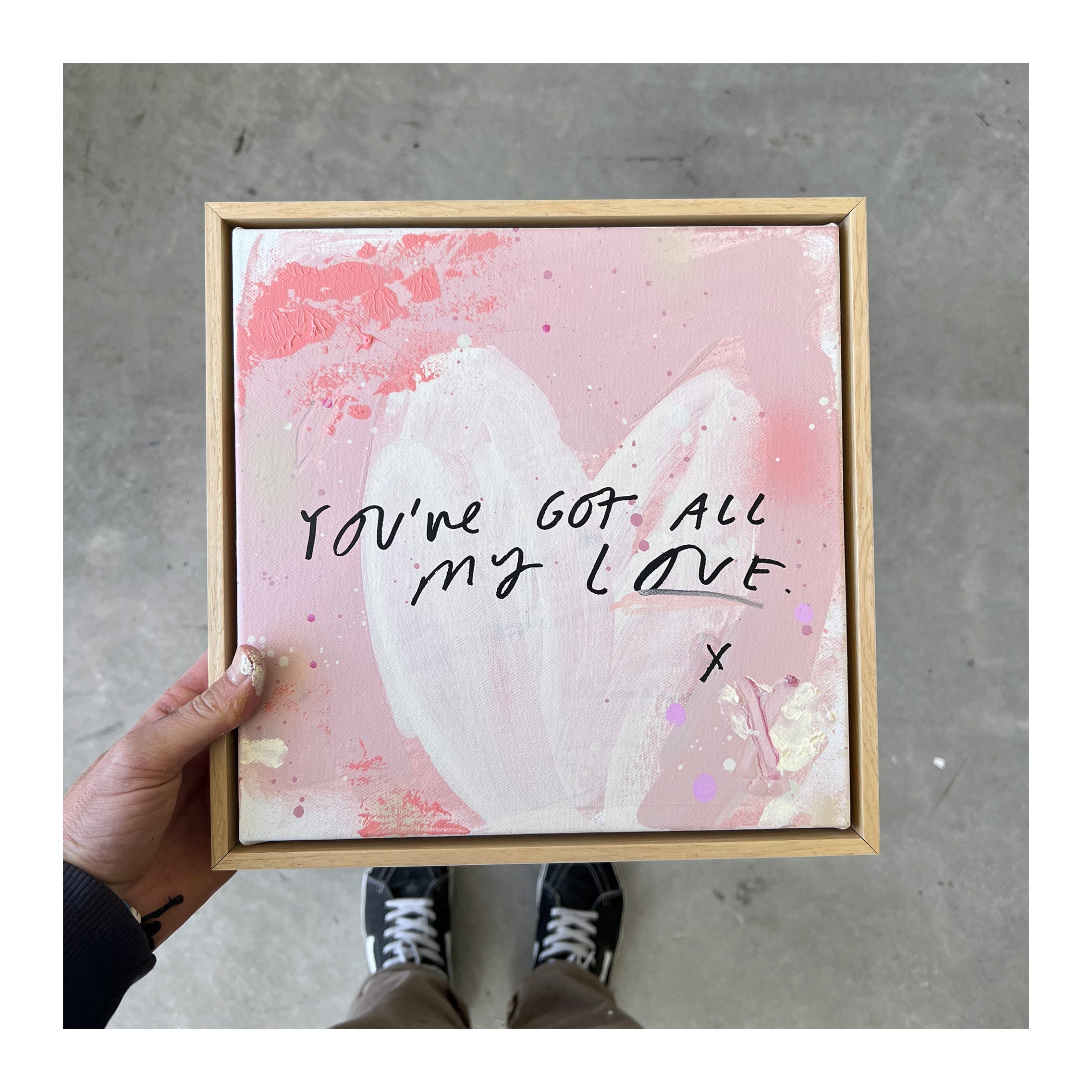 Each piece is a one-off work and unique in its paint strokes, colour palette and technique.