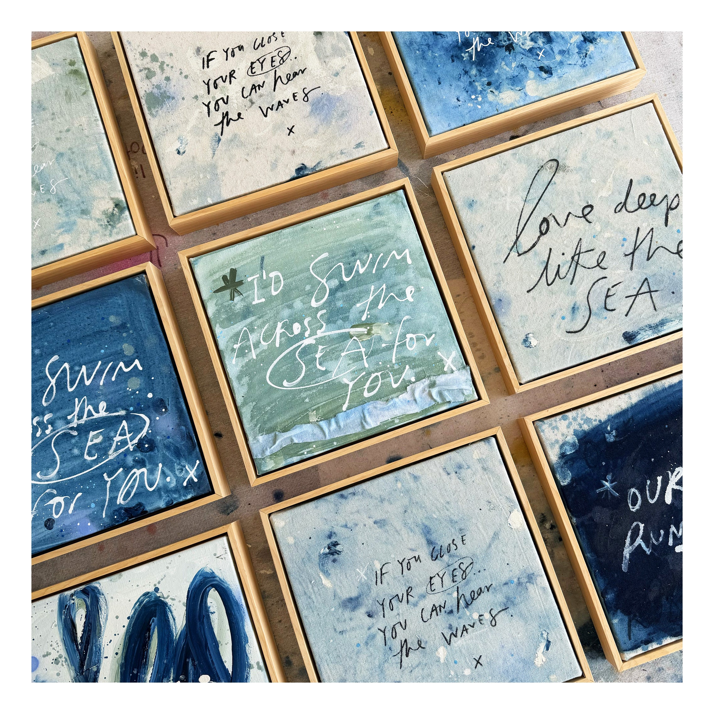 Each piece is a one-off work and unique in its paint strokes, colour palette and technique.